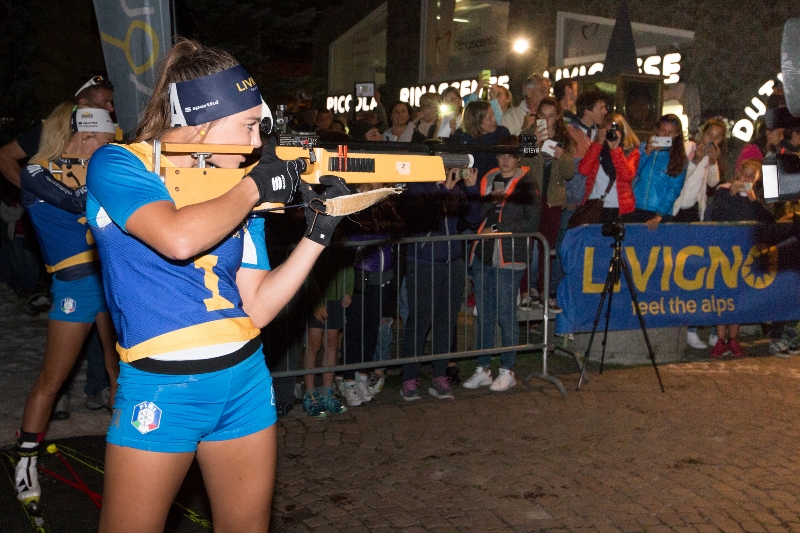Pił di mille metri cubi di neve conservata dallo scorso inverno grazie alla tecnica dello snowfarming, cosparsi su un kilometro di pista nel pieno centro di Livigno. Seicento fondisti contradaioli livignaschi, con abiti e attrezzatura di un tempo, le Nazionali italiane di sci di fondo e biathlon, atleti austriaci e norvegesi hanno dato spettacolo nella sera di Livigno dedicata alla 36esima edizione del Trofeo delle Contrade con il primo 1KShot.