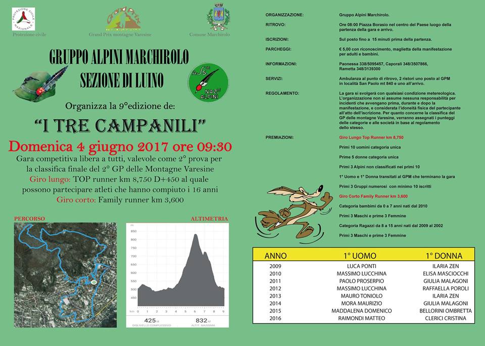 31/05/2017News I TRE CAMPANILI - Marchirolo (Va) - 4 giugno 2017